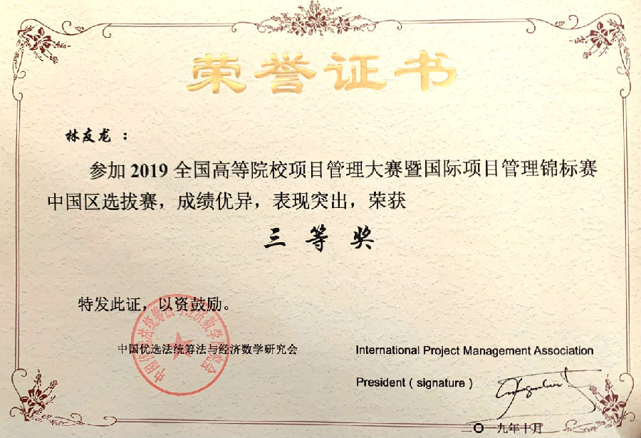 大赛分为研究生组和本科生组,经过激烈角逐,来自监理171班的林友龙同学获本科组三等奖,欧阳欣、庄文雅荣获优秀指导教师奖,我校荣获优秀组织奖。大赛中我校是唯一获奖的高职院校。