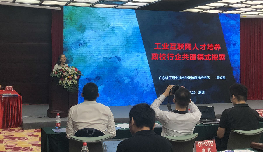 广东轻工职业技术学院是大会唯一一所被邀请的高校。我校信息技术学院院长秦文胜在峰会上做了《工业互联网人才培养校企合作共建模式探索》的主题报告,报告中,秦文胜阐述了工业互联网应用技术是新一代信息技术和先进制造业的融合发展的产物,是物联网以5G、云计算、大数据、人工智能等新兴技术推动的新热点领域,更是高等职业教育的前沿领域,具有鲜明的跨界融合、产教融合特点。工业互联网应用人才培养,需要政府行业指导,多个专业跨界协同,企业深度参与共同完成。报告受到了业界的好评,会后多家企业寻求商谈校企合作事宜。