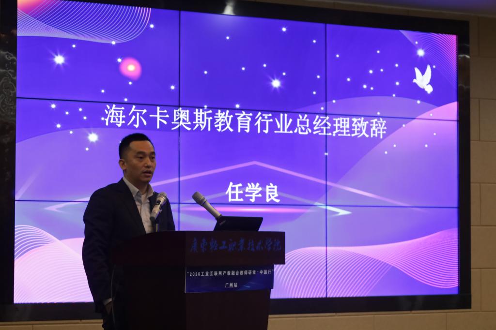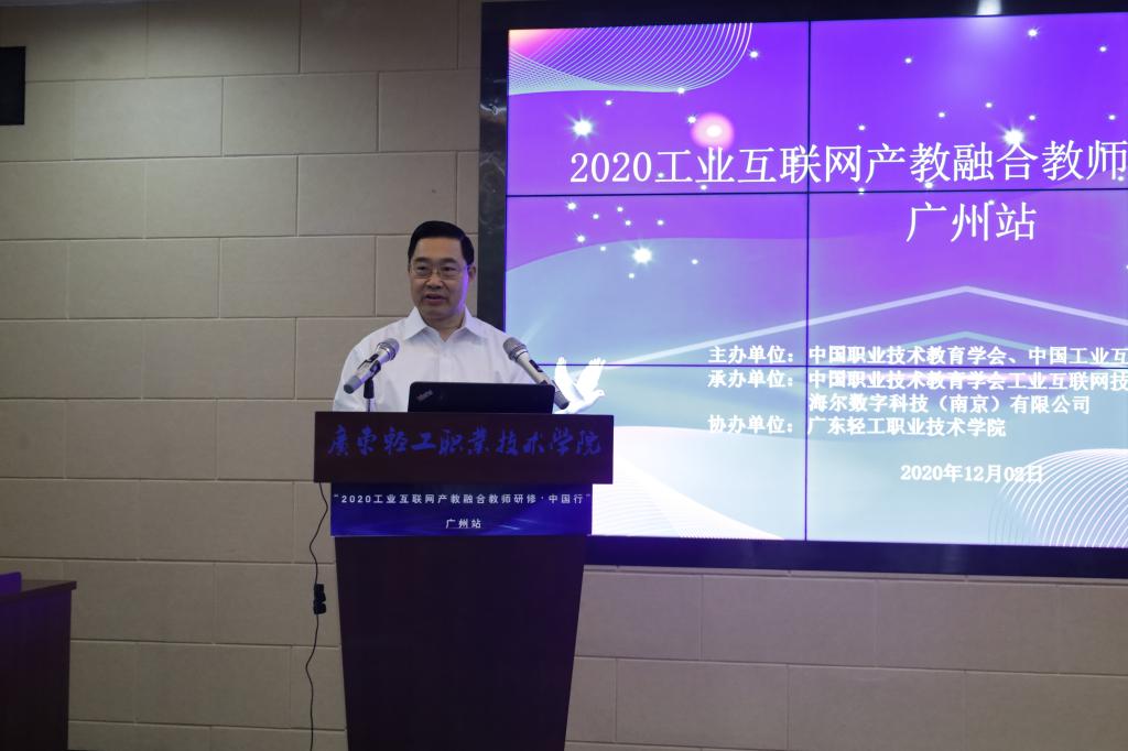 2020年12月2日,“工业互联网产教融合教师研修·中国行”首站广州站在广东轻工职业技术学院隆重举行开班仪式,本次研修班由中国职业技术教育学会与中国工业互联网研究院联合主办,中国职业技术教育学会工业互联网技术应用研究院、海尔数字科技(南京)有限公司共同承办,广东轻工职业技术学院协办。中国职业技术教育学会会长、教育部原副部长鲁昕,广东轻工职业技术学院党委书记、广东省职业技术教育学会会长杜安国,广东轻工职业技术学院校长、学会研究院执行院长卢坤建,中国工业互联网研究院总工程师王宝友,中国工业互联网研究院标准化技术研究所培训负责人张昂,中国信通院广州分院院长、学会研究院副院长王洪岭,广东省物联网协会副会长陈玉琪,广东轻工职业技术学院党委副书记梁艳珍,广东轻工职业技术学院党委原副书记周炳全,广东轻工职业技术学院信息技术学院院长、中国职业技术教育学会工业互联网研究院副院长兼产教科融合部主任秦文胜,顺德职业技术学院智能制造学院院长、学会研究院产教科融合部副主任杨小东,海尔卡奥斯教育行业总经理任学良等来自工业互联网领域的专家、学者、企业代表,以及来自全国多所高校骨干教师共九十余人出席了本次开班仪式。