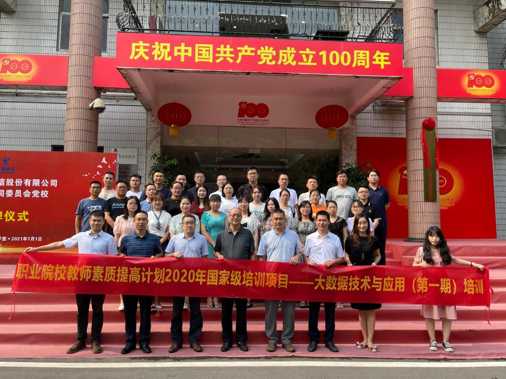 2021年7月26日上午,由湖南省教育厅主办,信息技术学院与广东省通信产业服务有限公司广州分公司联合承办的《湖南省2020年度“紧缺专业”大数据技术与应用国培(第一期)》在广州市白云区天翼白云学院隆重举行开班仪式。继续教育学院院长陆英杰、信息技术学院院长廖永红、副院长辛继胜、广东省通信产业服务有限公司广州分公司副总经理郑宏轩、广州分公司广州区域中心总经理秦建钜、广州分公司天翼白云学堂运营中心总经理杨静,以及来自湖南省19所高职院校、10所中职学校共30名骨干教师学员出席了开班仪式。开班仪式由广东轻工职业技术学院信息技术学院副院长辛继胜主持。