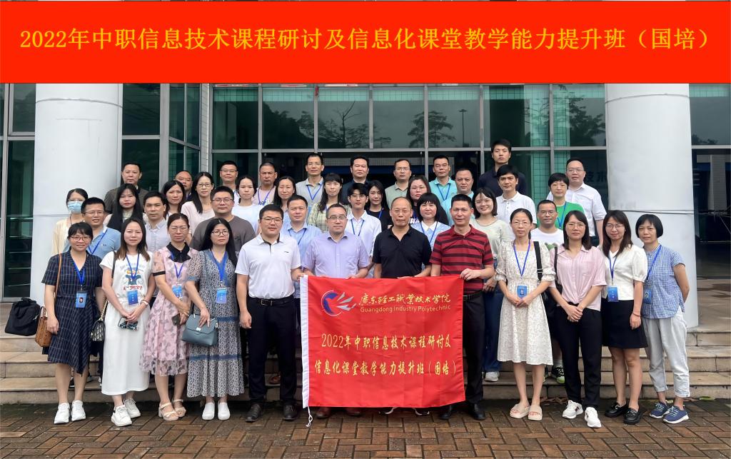 7月5日上午,由信息技术学院举办的“2022年中职信息技术课程研讨及信息化课堂教学能力提升班(国培)”,在我校南海校区北区隆重举行开班仪式。信息技术学院院长廖永红、副院长辛继胜、党政办主任蒋宜宾、工业互联网技术教研室主任陈君、现代信息技术教研室主任聂长浪、荔峰科技(广州)有限公司副总经理刘勋以及来自全省27所中职院校共40名骨干教师学员出席了开班仪式,开班仪式由陈君主持。
