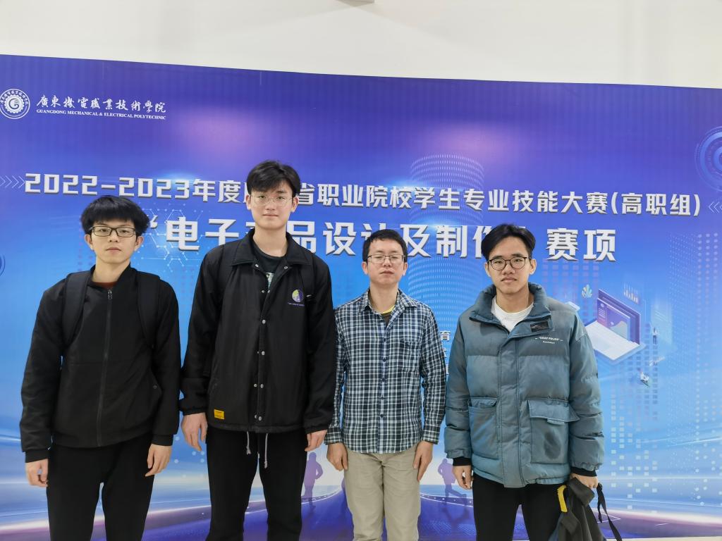 终端203陈祖梁、詹梓淇、何骏雄在“电子产品设计及制作”赛项中组成的1号队获得二等奖,指导老师赵慧、周启业。