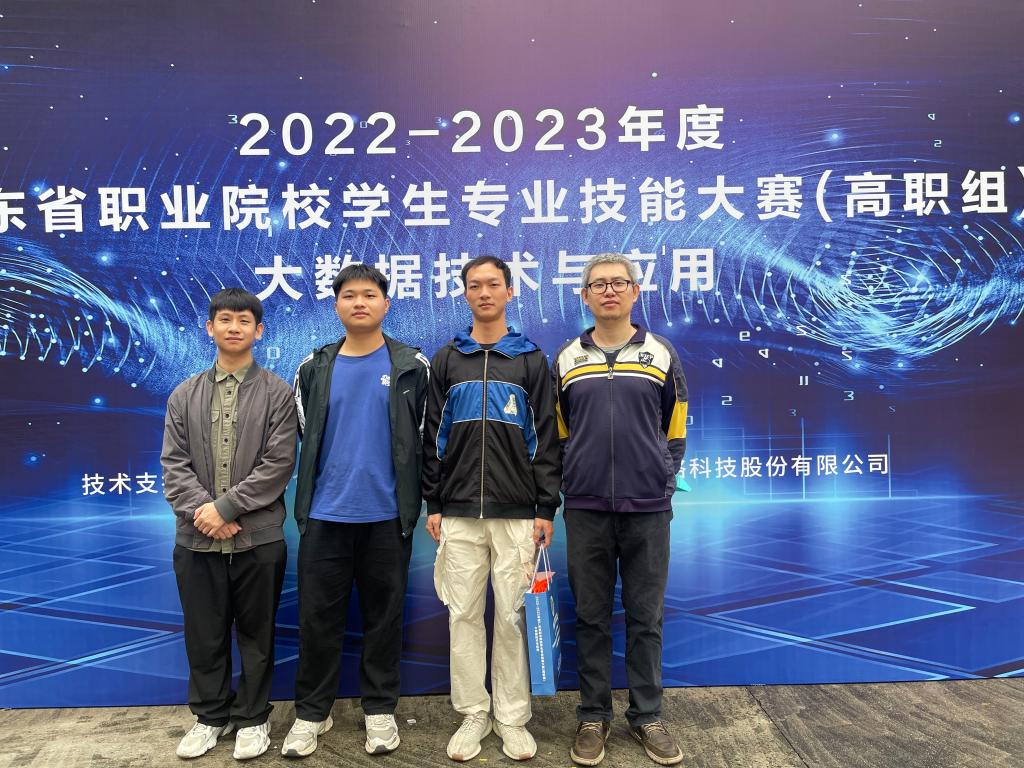大数据211廖伟康、高铅鹏、车文轩在“大数据技术与应用”赛项中获得一等奖,指导老师张寺宁、王珊珊。