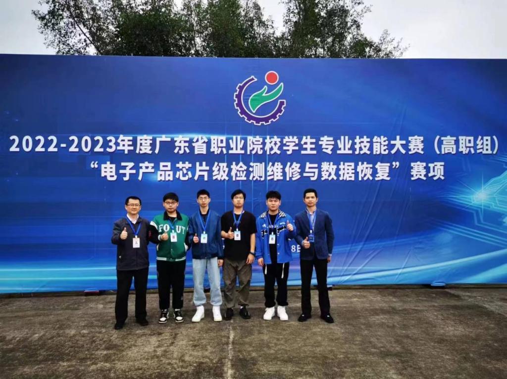 智能产品212吴志棠、通信213梁梓豪在“电子产品芯片级检测维修与数据恢复”赛项中获一等奖,指导老师李超、朱云鹏。
