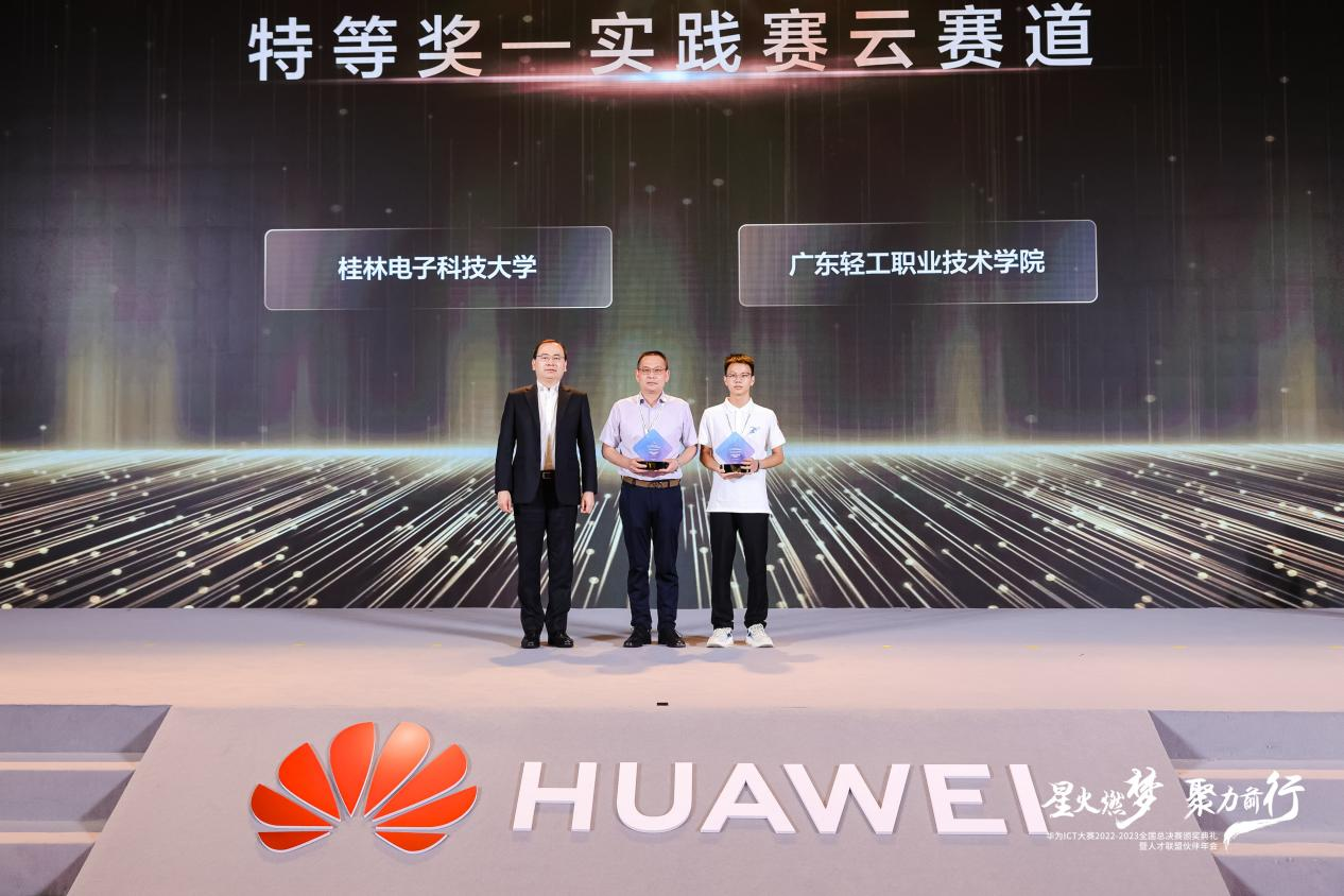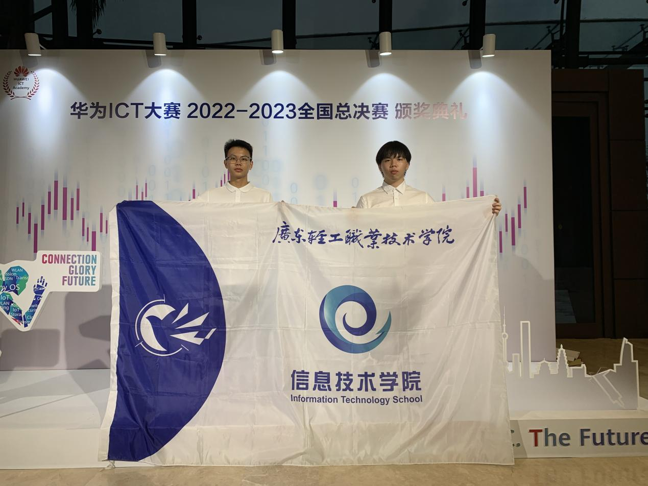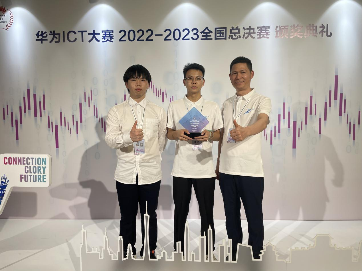 4月13日,“华为ICT大赛2022-2023全国总决赛颁奖典礼暨人才联盟伙伴年会”在海南三亚隆重举行,并同步现场直播。信息技术学院云计算202班梁嘉豪和通信201班苏健明在此次大赛实践赛云赛道中发挥出色、以少胜多,荣获高职组唯一特等奖,并成功晋级“华为ICT大赛全球总决赛”,指导老师李丹。华为ICT大赛已成功举办六届,第七届华为ICT大赛吸引了全国1200多所院校、7万余名学生报名参赛,其中223支队伍脱颖而出,站上全国总决赛舞台,进行了一场ICT技术巅峰对决。