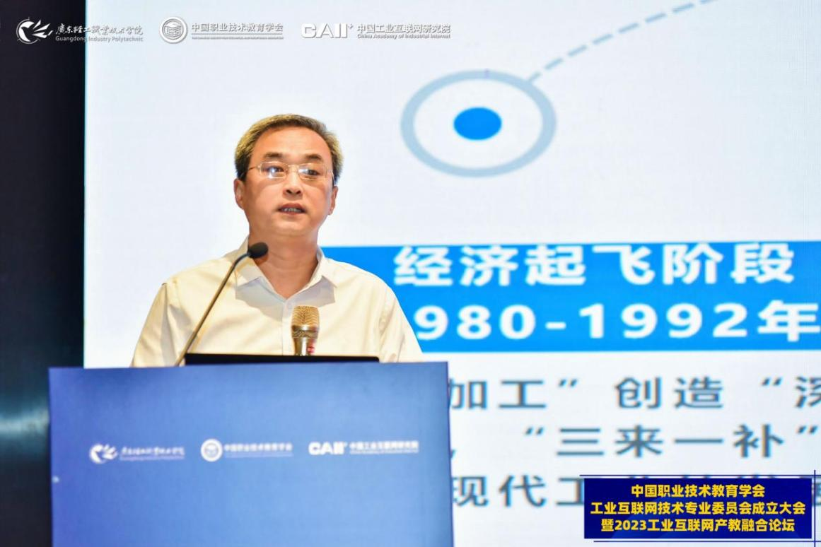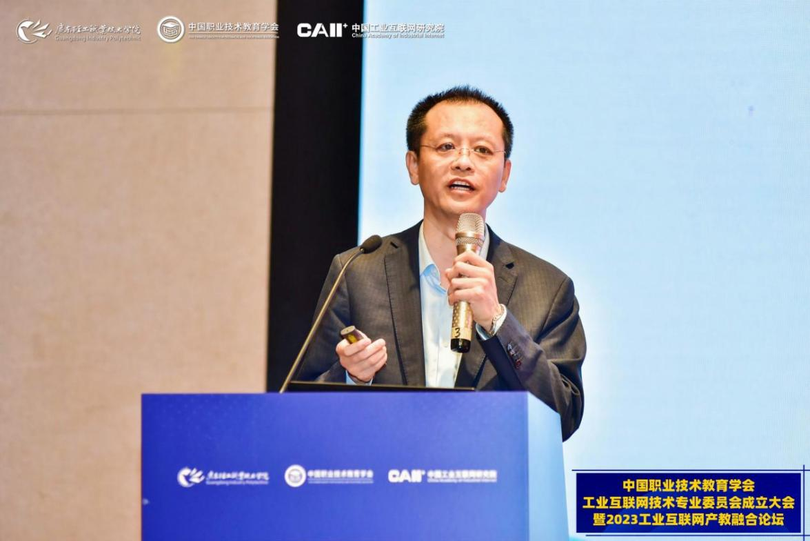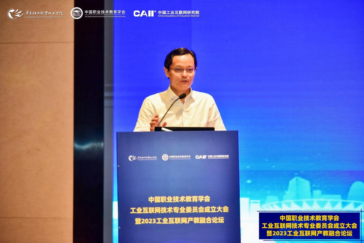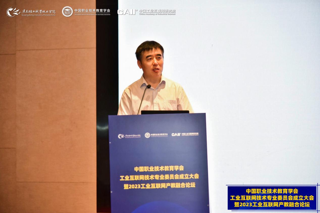 2023年5月16-17日,中国职业技术教育学会工业互联网技术专业委员会成立大会暨2023工业互联网产教融合论坛在广东佛山顺利召开。中国职业技术教育学会会长、教育部原副部长鲁昕,教育部职成司综合改革处二级调研员李红东,广东省教育厅二级巡视员吴艳玲,工业和信息化部教育与考试中心张任,广东轻工职业技术学院党委书记杜安国、学校校长卢坤建,中国工业互联网研究院总工程师王宝友,中国科学院计算技术研究所研究员、分布式系统研究中心副主任、中科南京信息高铁研究院副院长田霖等领导和专家出席。会议以线上、线下相结合的方式举行。来自全国各职业院校、科研院所及企业的200多名会员单位代表线下参会,3000余人线上参会。