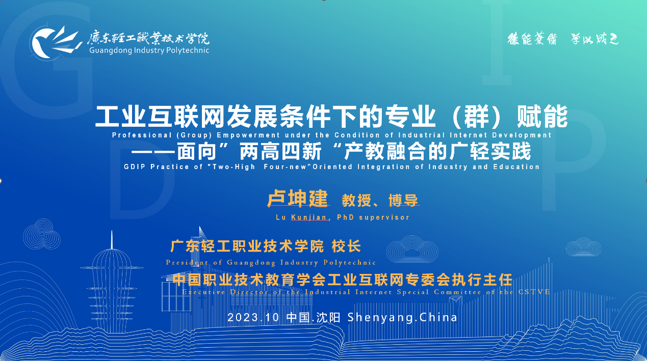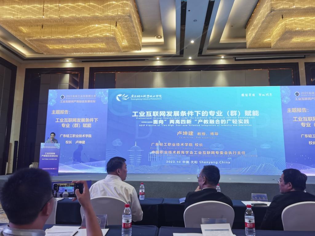 卢坤建校长做《在工业互联网发展条件下专业(群)赋能——面向“两高四新”产教融合的广轻实践》的主题报告。