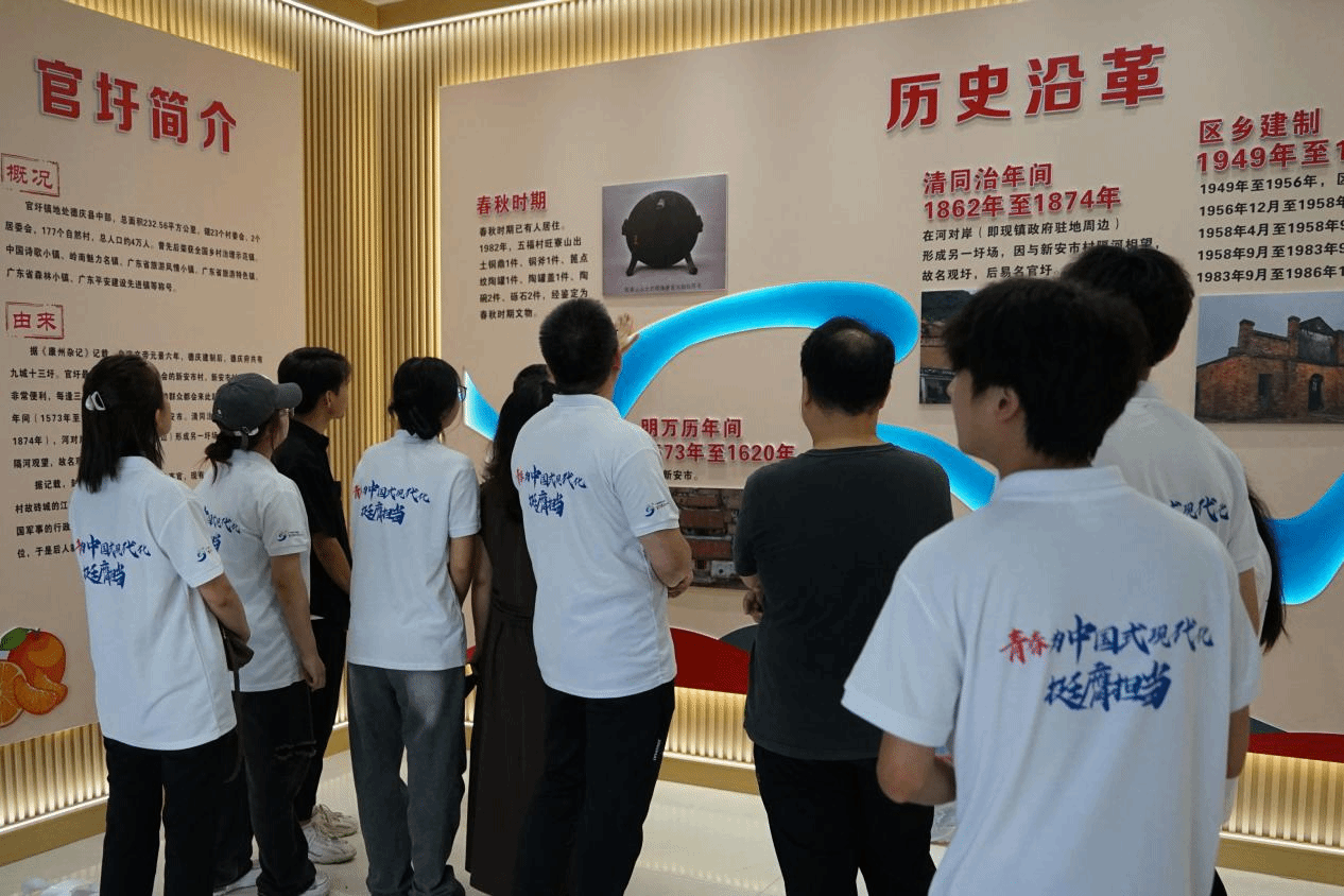 最后,突击队参观了两个圩镇的会客厅,深入当地特色小镇,详细了解当地的历史沿革、发展成就与建设规划。通过实地参观、素材挖掘,突击队对两个圩镇的建设发展、自然资源、文化特色等有了更直观的认识,为后续数字乡村平台的建设提供了鲜活的素材指引。