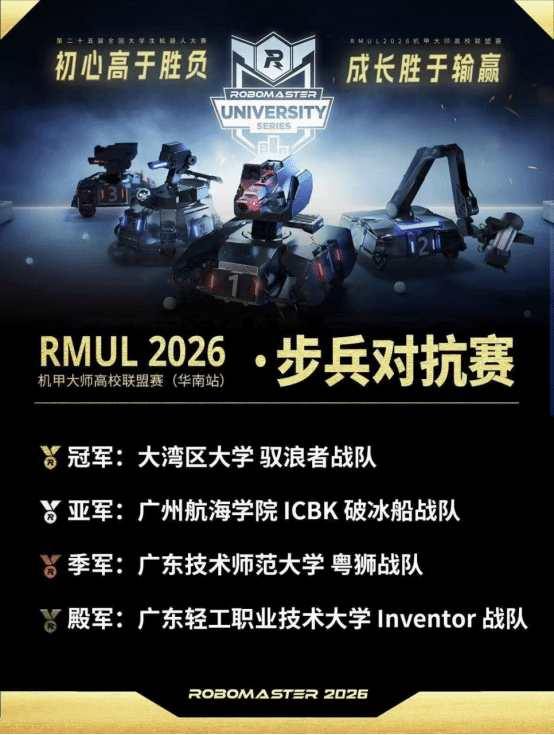 2026年3月19日至22日,全国大学生机器人竞赛RoboMaster高校联盟赛(华南站)在北京理工大学珠海校区隆重举行。来自华南地区众多高校的优秀战队齐聚一堂,展开了一场激烈的机器人竞技较量。