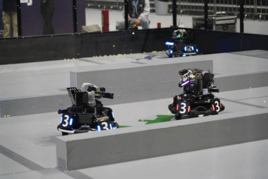 3V3对抗赛中,对战双方需自主研发步兵机器人、英雄机器人及哨兵机器人,在指定的比赛场地内进行战术对抗,战场控制程度高的一方可使得对方扣除“胜利点”,优先使得对方“胜利点”归零的一方即可获得胜利。