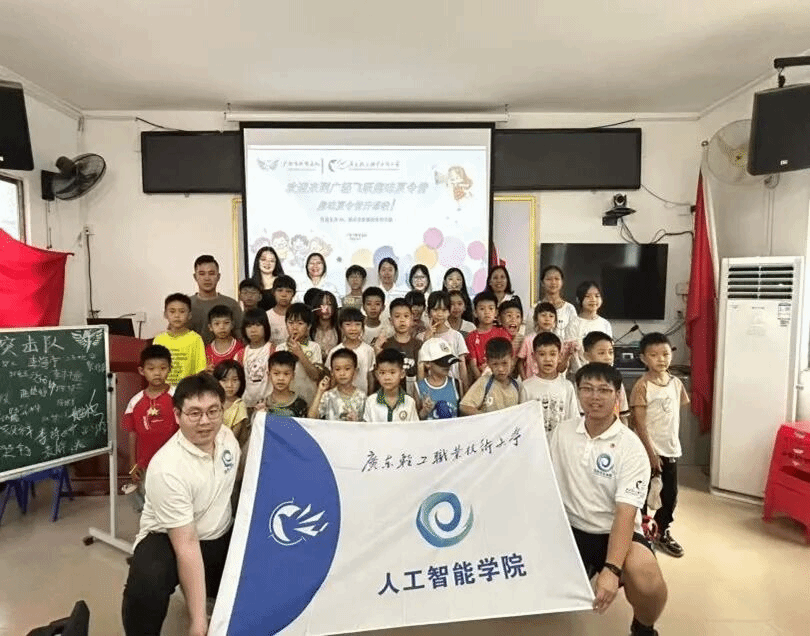 7月6日,广东轻工职业技术大学人工智能学院广轻飞跃“百千万工程”突击队奔赴广东省肇庆市德庆县古杏村,开启为期五天的公益课程之旅。本次课程面向学前班到六年级的小朋友,在课程中将人工智能相关知识作为授课的重要部分,培养他们的人工智能认知和素养,为他们带来丰富而新颖的知识体验。