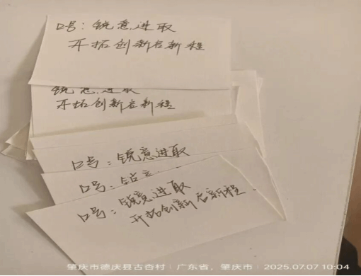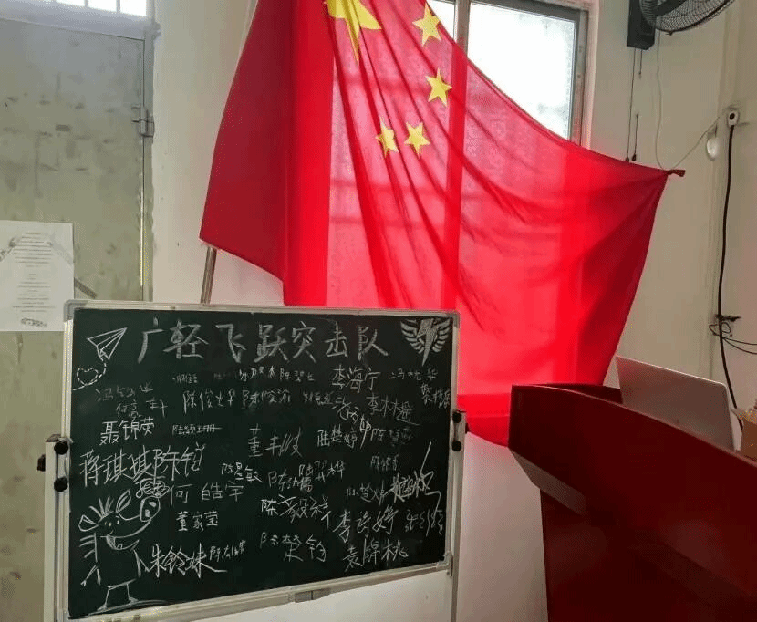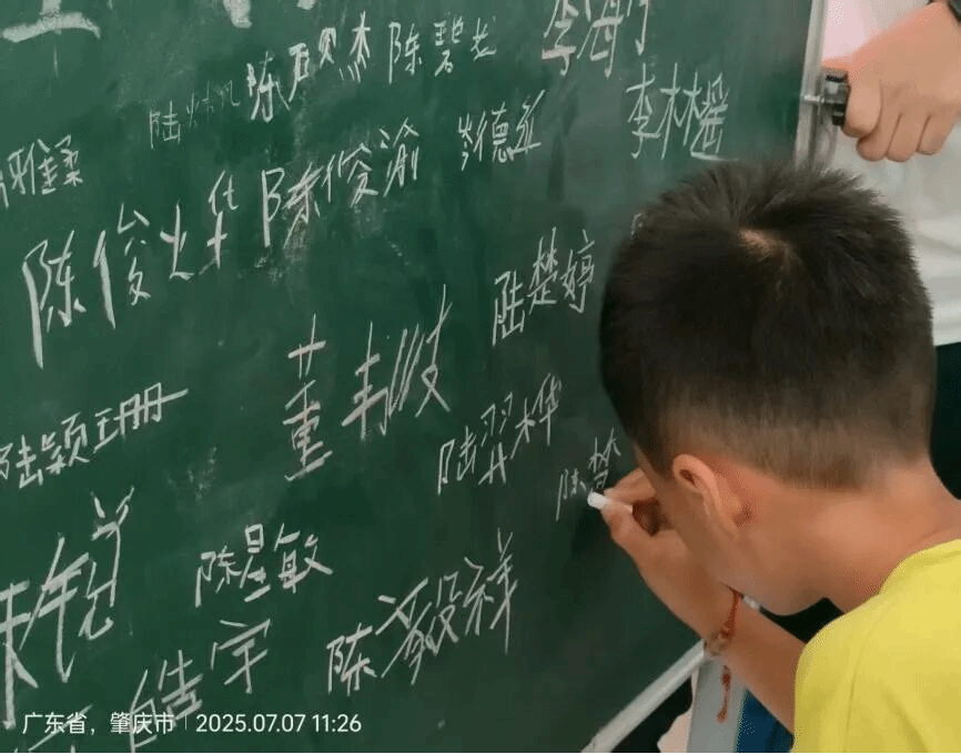 “锐意进取,开拓创新启新程”一句充满活力与创意的口号,展现了广轻飞跃突击队趣味夏令营的独特风格。此外,营员们还共同参与了黑板签名照的制作,在黑板上留下自己的名字,用合影定格下开营首日的美好瞬间,为夏令营增添了满满的仪式感。