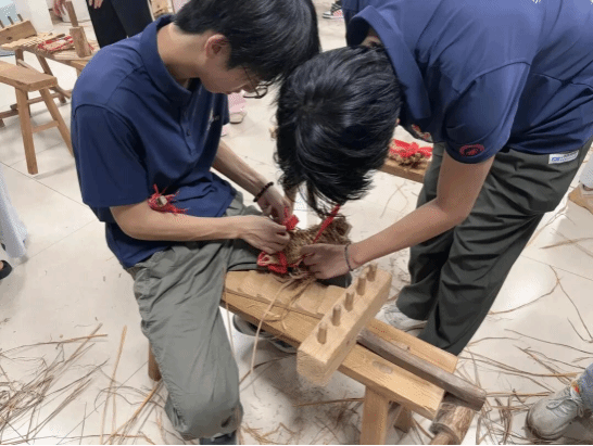 下午的课堂上,老师介绍了草鞋的故事与编织技法。在学编草鞋、试穿草鞋的体验中,队员们切身感悟到了红军的乐观主义精神,以及永葆艰苦奋斗的优良作风。