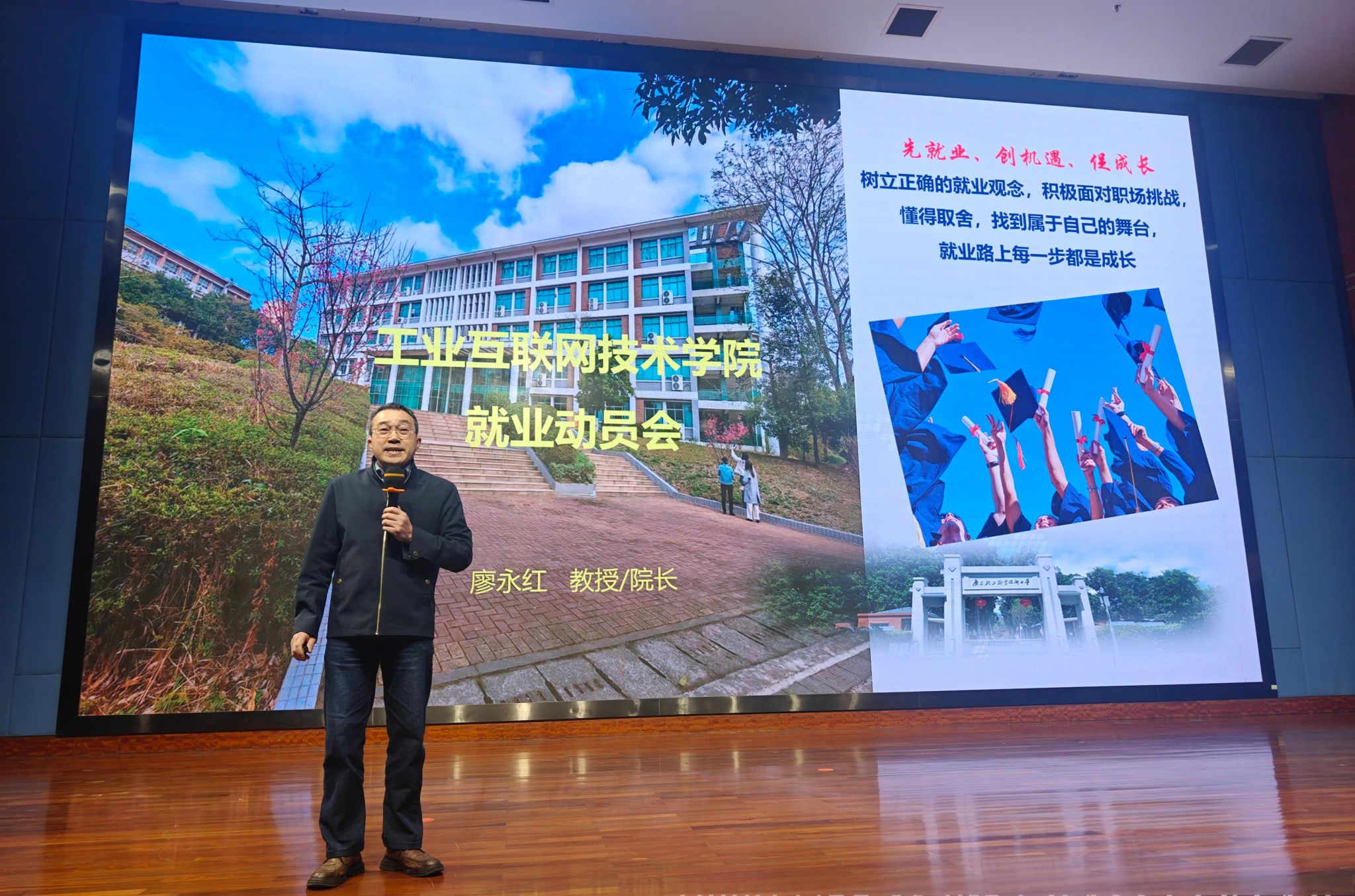 2025年1月6日,信息技术学院在南海校区图书馆报告厅隆重召开2025届毕业生就业动员大会,院长廖永红为同学们带来了一场干货满满的动员演讲。